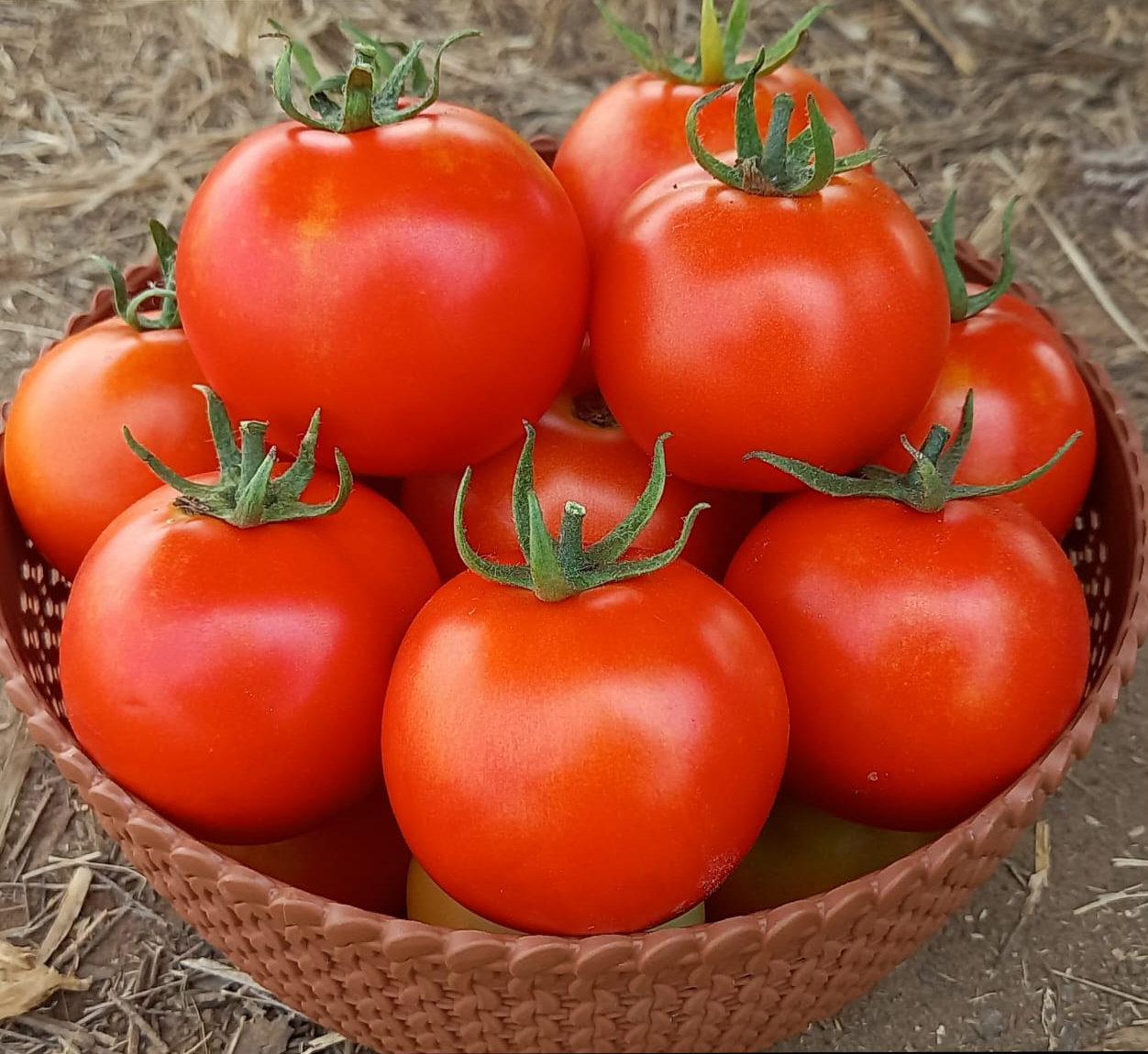Semideterminate plant with high TYLCV tolernace hybrid, high uniform fruit in flat round shape with white shoulder